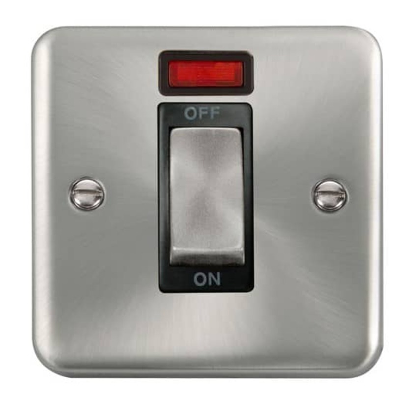 Satin Chrome 45A Ingot 1 Gang Double Pole Plate Switch With Neon.