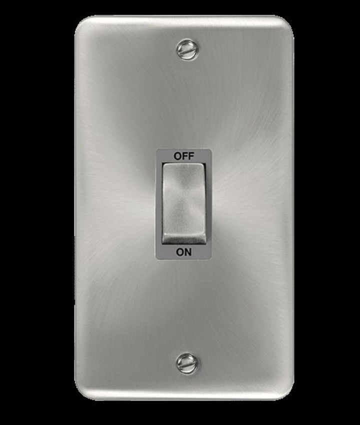 Satin Chrome 45A Ingot 2 Gang (Vertical) Double Pole Plate Switch
