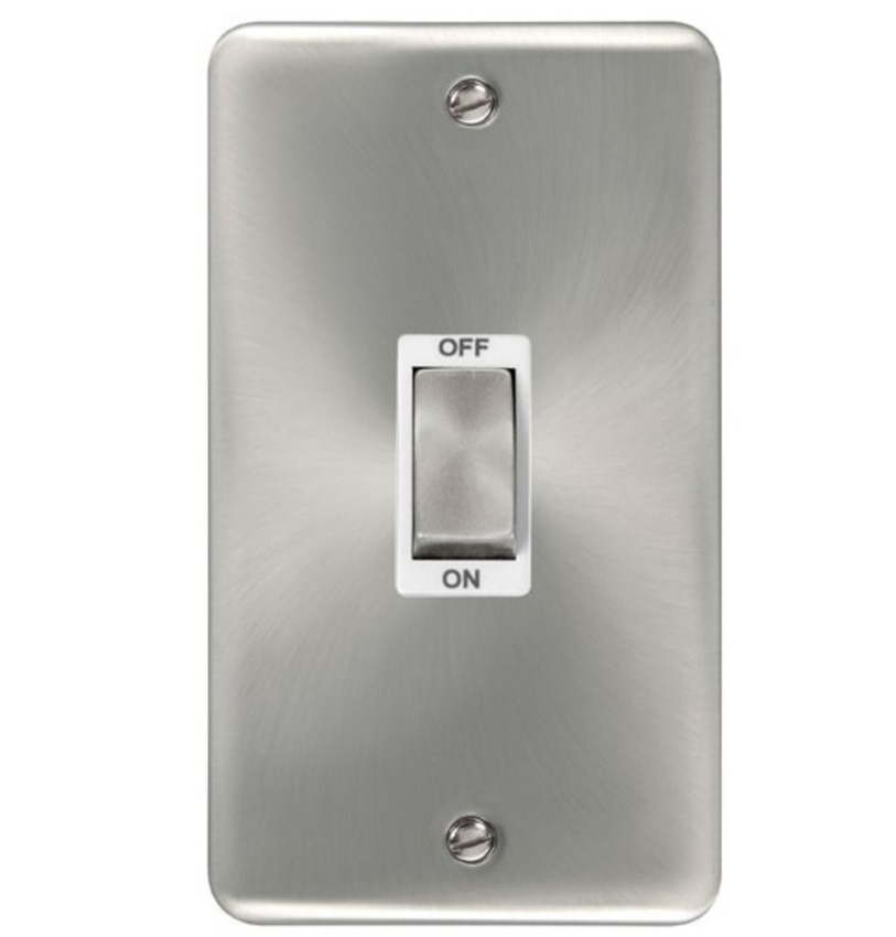 Satin Chrome 45A Ingot 2 Gang (Vertical) Double Pole Plate Switch