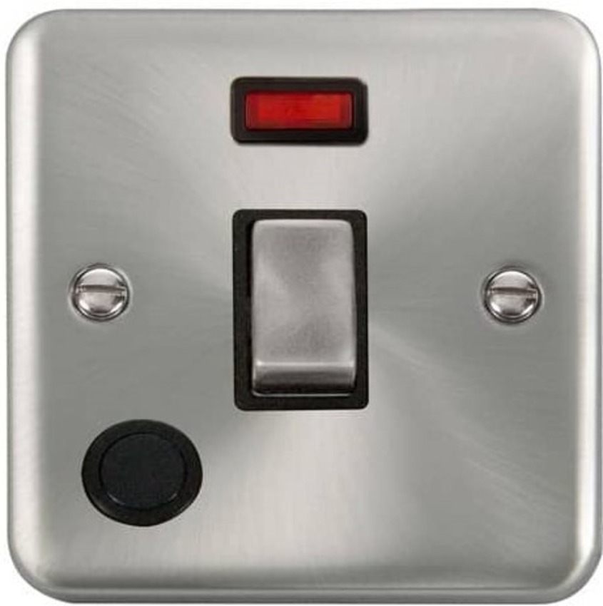 Satin Chrome 20A Ingot Double Pole Plate Switch With Optional Flex Outlet With Neon.