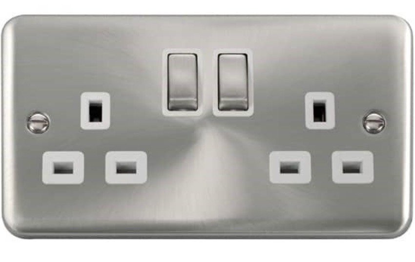 Satin Chrome 13A Ingot 2 Gang Double Pole Switched Socket Outlet.