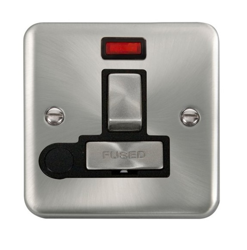 Satin Chrome 13A Ingot Double Pole Switched Fused Connection Unit With Neon & Optional Flex Outlet.