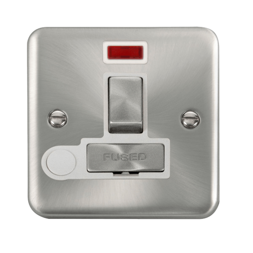 Satin Chrome 13A Ingot Double Pole Switched Fused Connection Unit With Neon & Optional Flex Outlet.