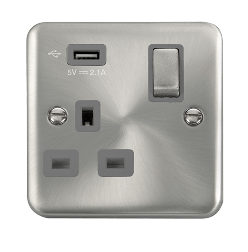 Click Deco Plus DPSC571UGY 13A Ingot 1G Switched Socket Outlet With Single 2.1A USB Outlet