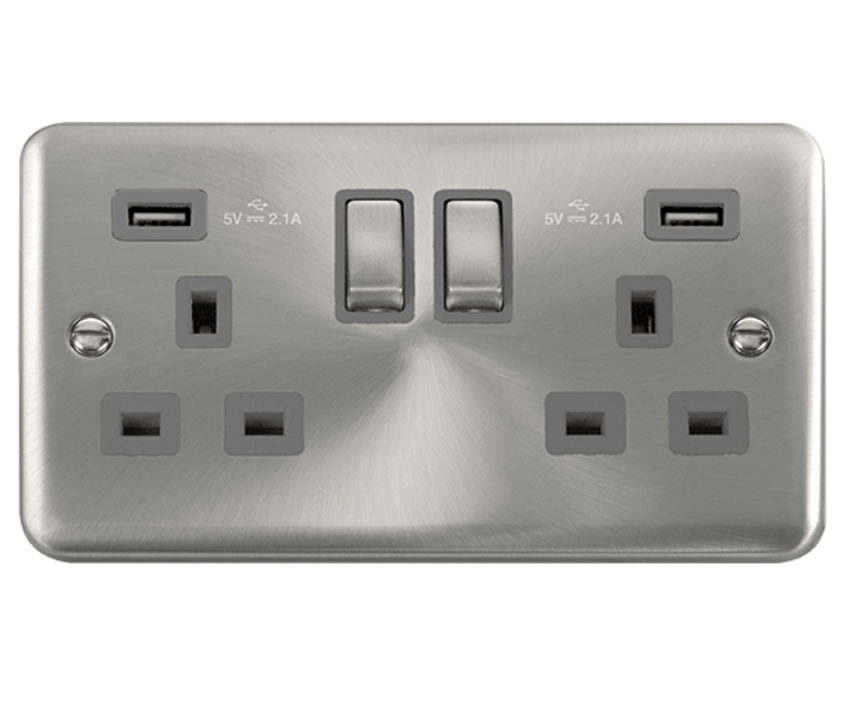Click Deco Plus DPSC580GY 13A Ingot 2G Switched Socket Outlet With Twin USB (Total 4.2A) Outlets