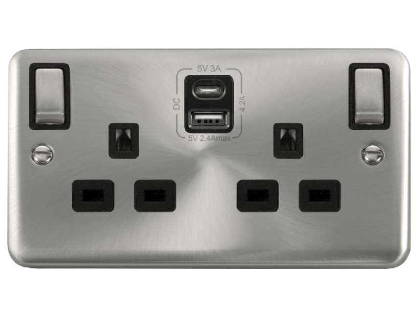 Click Deco Plus DPSC586BK 13A Ingot 2G Switched Safety Shutter Socket Outlet With Type A & C USB (4.2A) Outlets