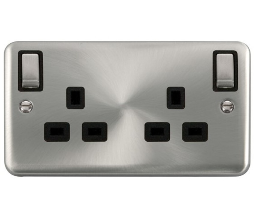Satin Chrome 13A Ingot 2 Gang Double Pole Switched Socket Outlet With Outboard Rockers.