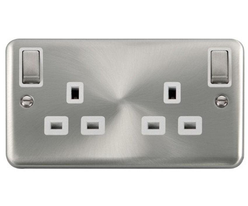 Satin Chrome 13A Ingot 2 Gang Double Pole Switched Socket Outlet With Outboard Rockers.