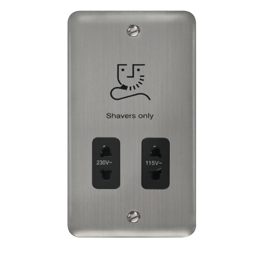 Stainless Steel 115V/230V Dual Voltage Shaver Socket Outlet. General Information Plate Dimensions (mm) 88 (W) x 146 (H) x 8 (D) Dimensions With Gasket (mm) 91 (W) x 149 (H) x 9 (D) Plat ... Read More