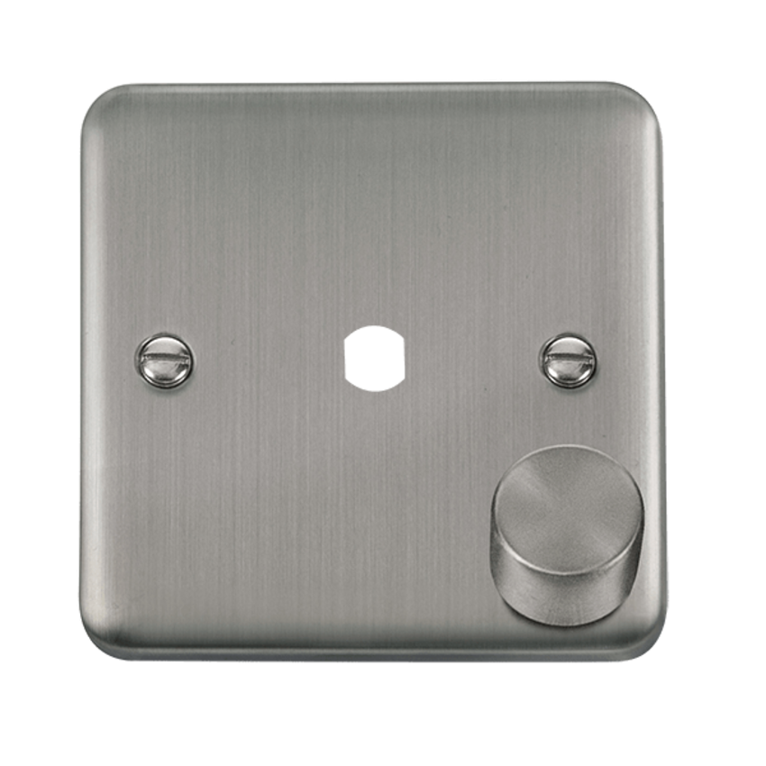 Stainless Steel 1 Gang Unfurnished Dimmer Plate & Knob (650W Max) - 1 Aperture.