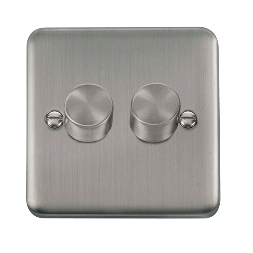 Stainless Steel 2 Gang 2 Way 400Va Dimmer Switch.