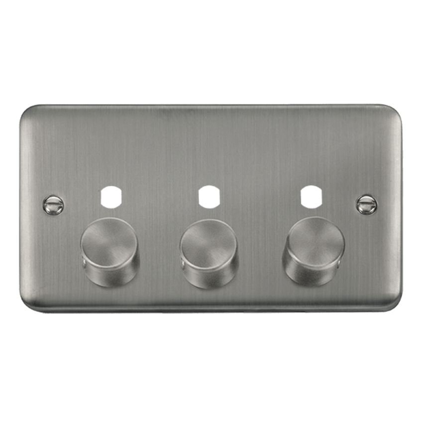 Stainless Steel 2 Gang Unfurnished Dimmer Plate & Knobs (1200W Max) - 3 Apertures.