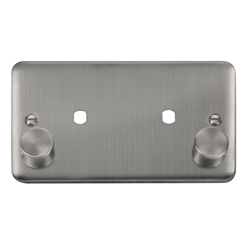 Stainless Steel 2 Gang Unfurnished Dimmer Plate & Knobs (1630W Max) - 2 Apertures.