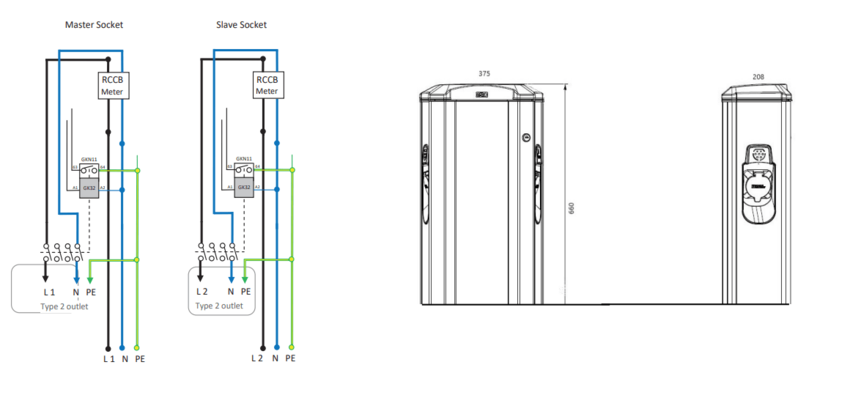 Garo's Wall Mounted Dual Charger GTB (WiFi & LAN) The smart charger for two electric vehicles.