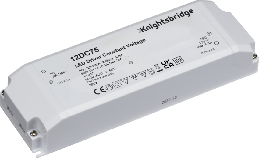 Knightsbridge 12V 75W LED Driver - Constant Voltage. With open circuit, short circuit and overheat and overload protection.