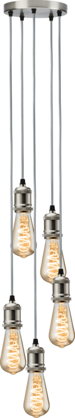 Knightsbridge's new Calla range, 5 light cluster ceiling pendant with vintage style lamp holders. Each drop has 1.8m grey fabric flex cable, where height can be adjusted independently. Fitti ... Read More