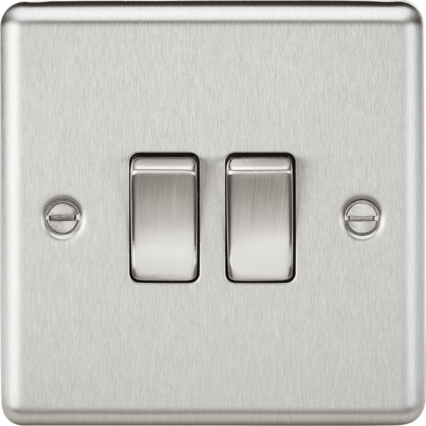Knightsbridge's Rounded Edge Range, contemporary style with matching metal rocker switches. Moisture gasket built in to prevent moisture transfer from wall to plate, ensuring plate remains untarnished.