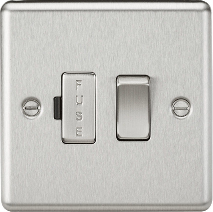 Knightsbridge's Rounded Edge Range, contemporary style with matching metal rocker switches. Moisture gasket built in to prevent moisture transfer from wall to plate, ensuring plate remains untarnished.
