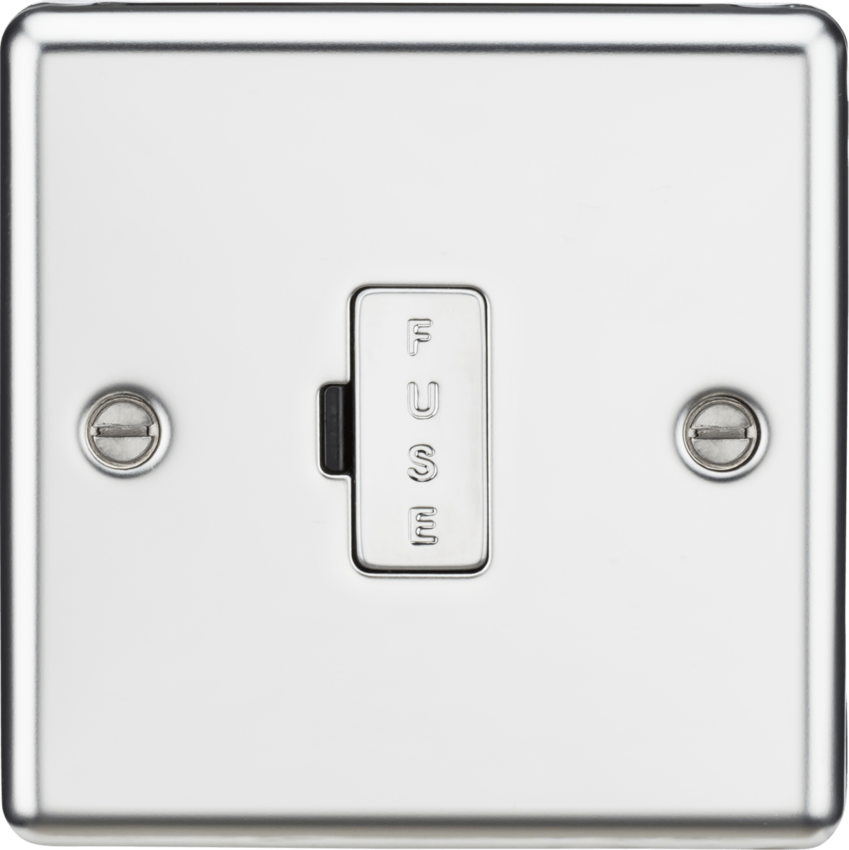 Knightsbridge's Rounded Edge Range, contemporary style with matching metal rocker switches. Moisture gasket built in to prevent moisture transfer from wall to plate, ensuring plate remains untarnished.