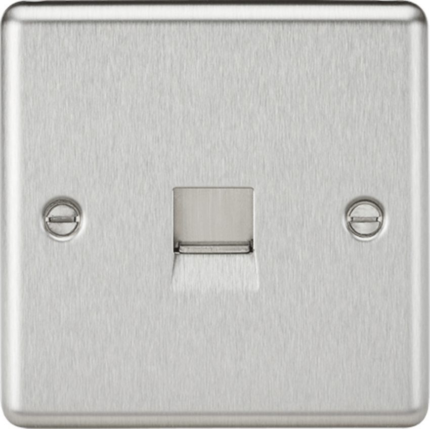 Knightsbridge's Rounded Edge Range, contemporary style with matching metal rocker switches. Moisture gasket built in to prevent moisture transfer from wall to plate, ensuring plate remains untarnished.