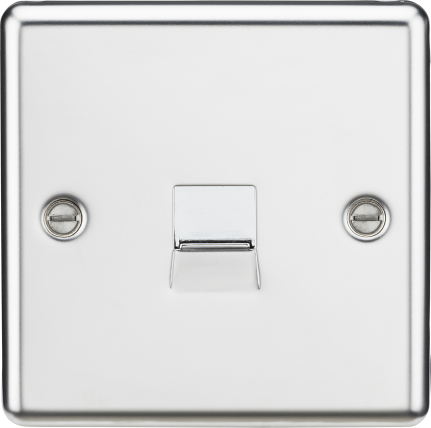 Knightsbridge's Rounded Edge Range, contemporary style with matching metal rocker switches. Moisture gasket built in to prevent moisture transfer from wall to plate, ensuring plate remains untarnished.