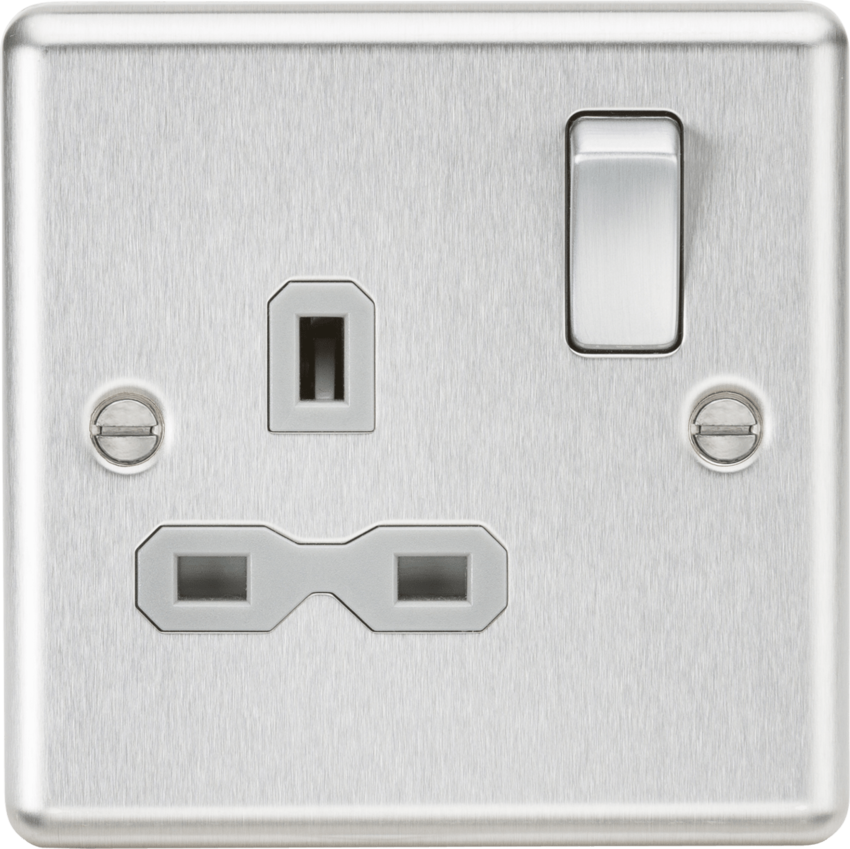 Knightsbridge CL7BCG 13A 1G DP Switched Socket Brushed Chrome -Grey Insert