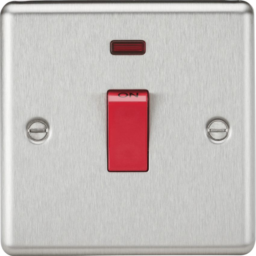 Knightsbridge's Rounded Edge Range, contemporary style with matching metal rocker switches. Moisture gasket built in to prevent moisture transfer from wall to plate, ensuring plate remains untarnished.