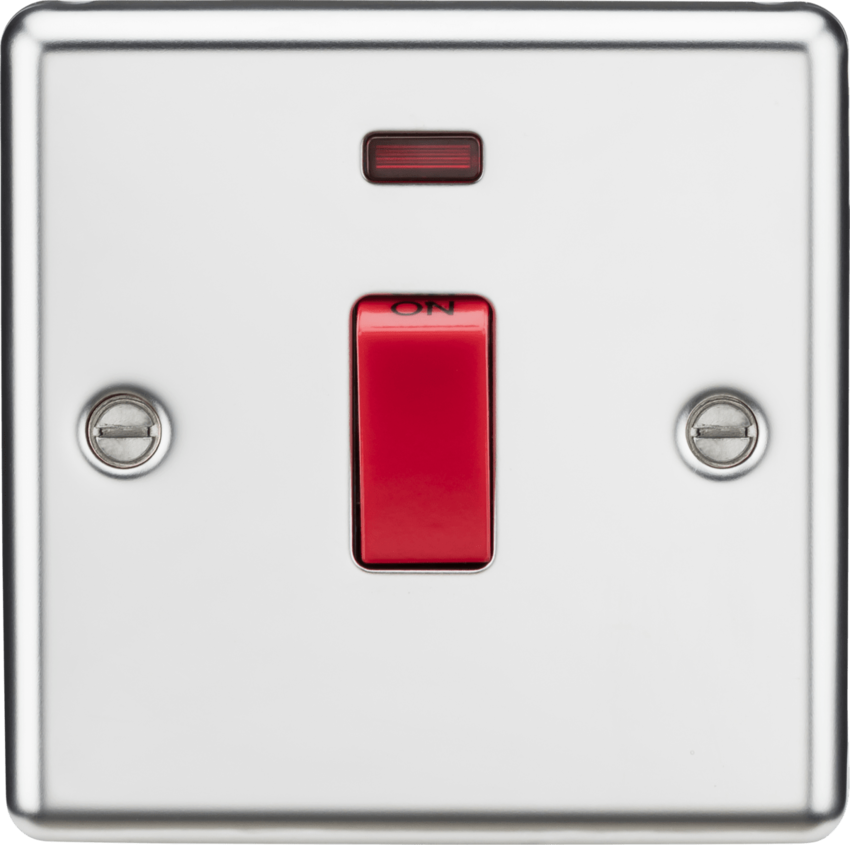 Knightsbridge's Rounded Edge Range, contemporary style with matching metal rocker switches. Moisture gasket built in to prevent moisture transfer from wall to plate, ensuring plate remains untarnished.