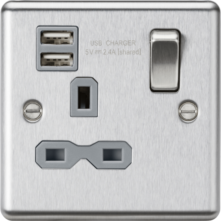 Knightsbridge CL9124BCG 13A 1G Switched Socket Dual USB Charger BC -Grey Insert