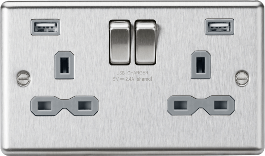 Knightsbridge CL9224BCG 13A 2G Switched Socket Dual USB Charger (A+A) BC -Grey Insert