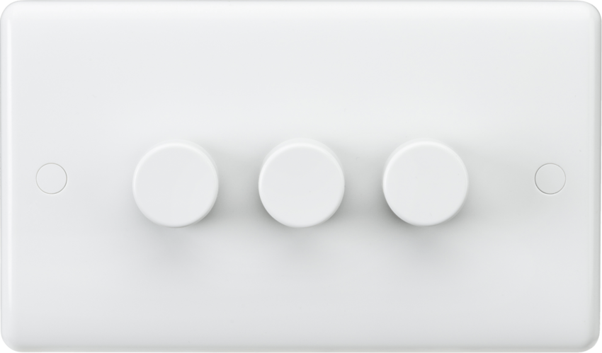 Knightsbridge's Curved Edge Range with soft rounded edges. They are supplied with matching screw cap covers and manufactured to the latest British Standards. 3 Gang 2 Way Dimmer, 40-400W for ... Read More