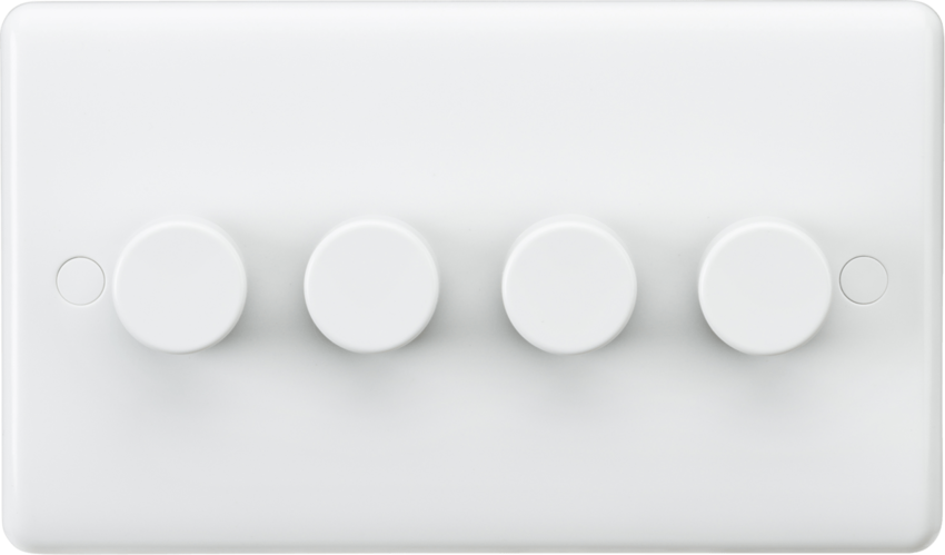 Knightsbridge's Curved Edge Range with soft rounded edges. They are supplied with matching screw cap covers and manufactured to the latest British Standards. 4 Gang 2 Way Dimmer, 40-400W for ... Read More
