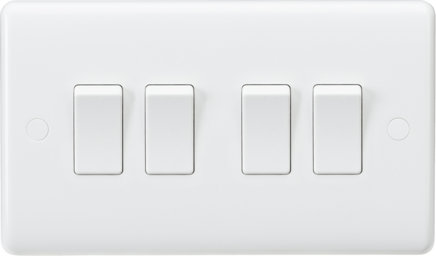 Knightsbridge's Curved Edge Range with soft rounded edges. They are supplied with matching screw cap covers and manufactured to the latest British Standards. 10AX 4 Gang 2 Way Switch. Genera ... Read More