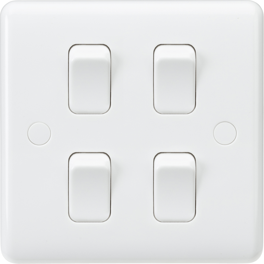 Knightsbridge's Curved Edge Range with soft rounded edges. They are supplied with matching screw cap covers and manufactured to the latest British Standards. 10AX 4 Gang 2 Way Switch on sing ... Read More
