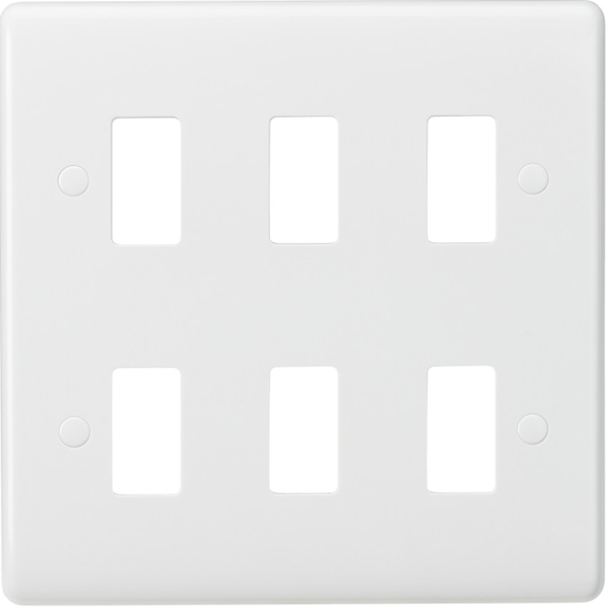 Knightsbridge's Curved Edge Range with soft rounded edges. They are supplied with matching screw cap covers and manufactured to the latest British Standards. 6 Gang Grid Faceplate. General I ... Read More