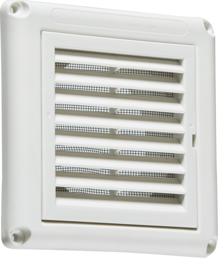 Knightsbridge Grille for Extractor Fan. Louvered vent, with integral fly screen to keep out insects, the front grille is removable allowing access for maintenance of the fly screen. An ideal fuss free solution when you need to install a hole in an external or internal wall. Suitable for use with 4 inch/100mm fan via round ducting, compatible with 4 inch/100mm round rigid or flexible ducting.