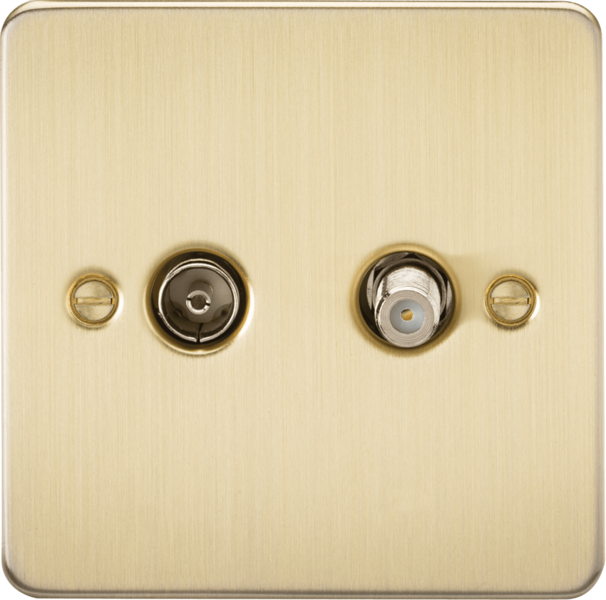 Knightsbridge Flat Plate FP0140BB TV & SAT TV Isolated Outlet - Brushed Brass