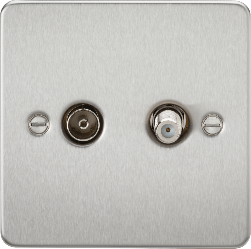 Knightsbridge Flat Plate FP0140BC TV & SAT TV Isolated Outlet - Brushed Chrome