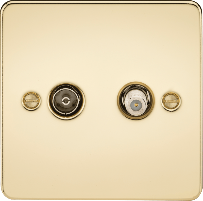 Knightsbridge Flat Plate FP0140PB TV & SAT TV Isolated Outlet - Polished Brass