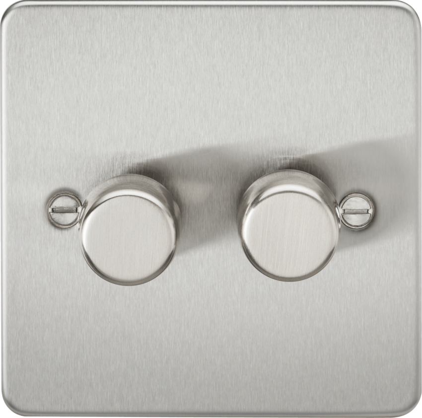 Knightsbridge Flat Plate FP2182BC 2G 2 Way Trailing Edge Dimmer (10-200W)- Brushed Chrome