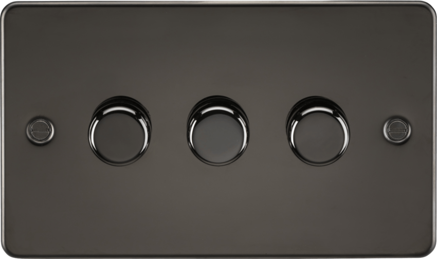 3 Gang 2 Way Trailing Edge Dimmer, 10-200W Incandescent, 5-150W LED.