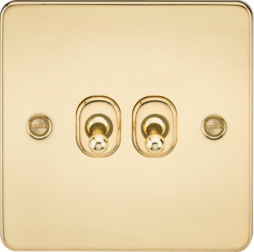 Knightsbridge Flat Plate FP2TOGPB 10AX 2G 2 Way Toggle Switch - Polished Brass