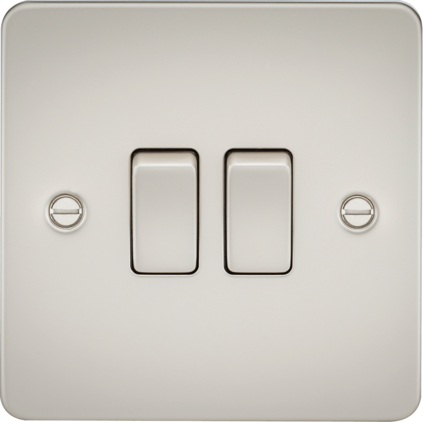 Knightsbridge's Flat Plate Range, an ultra slim profile design made from a high quality metal with matching rockers and a built in moisture gasket. 10AX 2 Gang 2 Way Switch. General Informat ... Read More