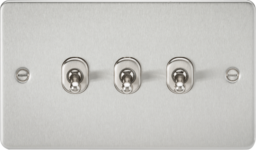 Knightsbridge Flat Plate FP3TOGBC 10AX 3G 2 Way Toggle Switch- Brushed Chrome