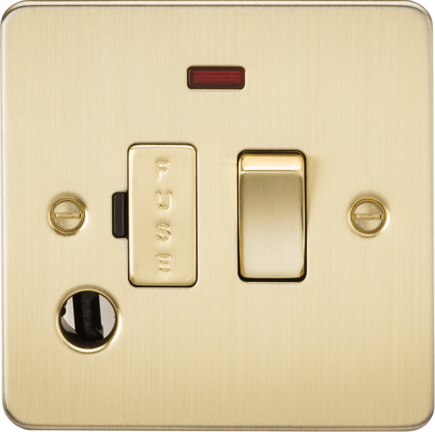 Knightsbridge Flat Plate FP6300FBB 13A Switched Fused Spur Unit with Neon & Flex Outlet - Brushed Brass