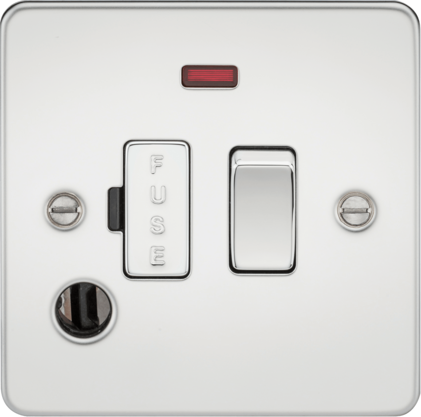 Knightsbridge Flat Plate FP6300FPC 13A Switched Fused Spur Unit with Neon & Flex Outlet - Polished Chrome