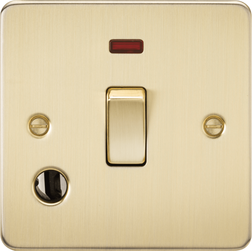 Knightsbridge Flat Plate FP8341FBB 20A 1G DP Switch with Neon & Flex Outlet - Brushed Brass