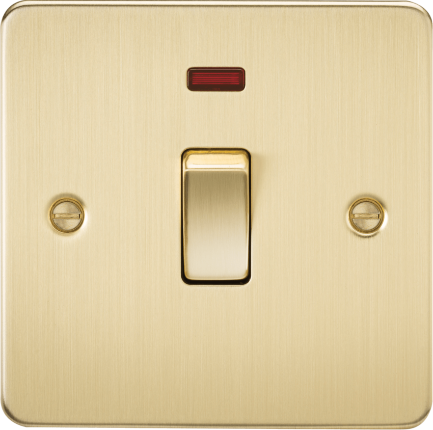 Knightsbridge Flat Plate FP8341NBB 20A 1G DP Switch with Neon - Brushed Brass