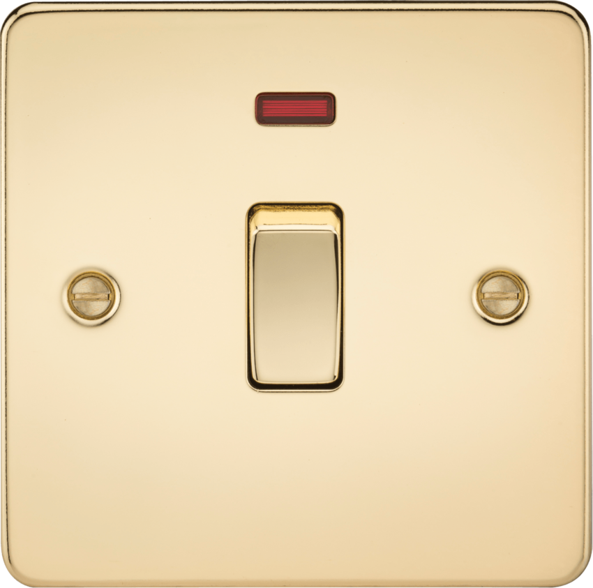 Knightsbridge Flat Plate FP8341NPB 20A 1G DP Switch with Neon - Polished Brass