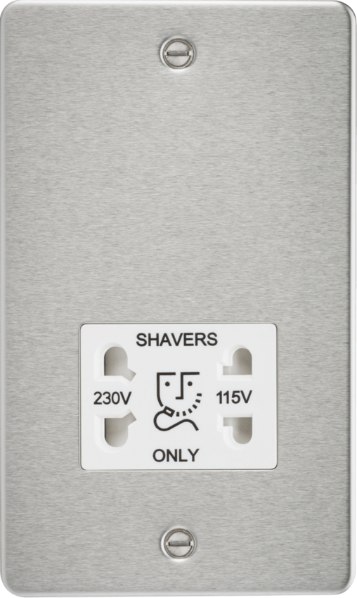Knightsbridge Flat Plate FP8900BCW Dual Voltage Shaver Socket (115/230V) Brushed Chrome - White Insert